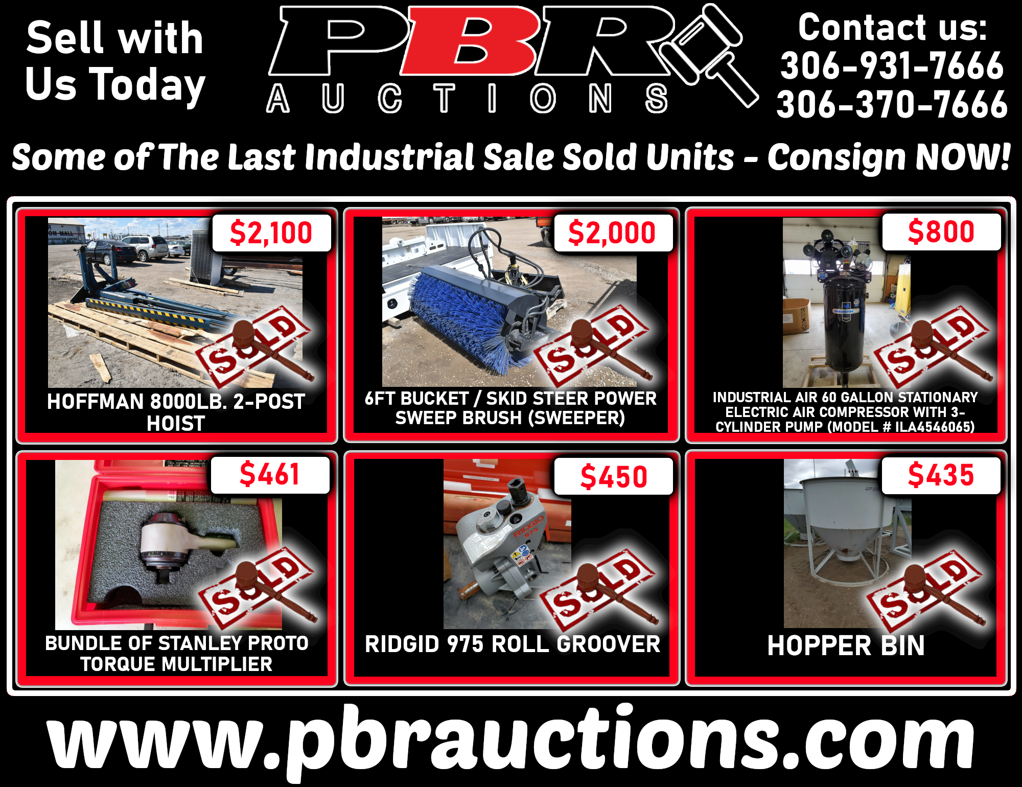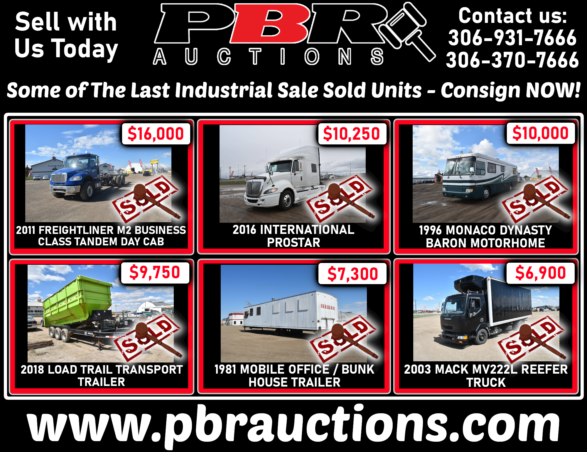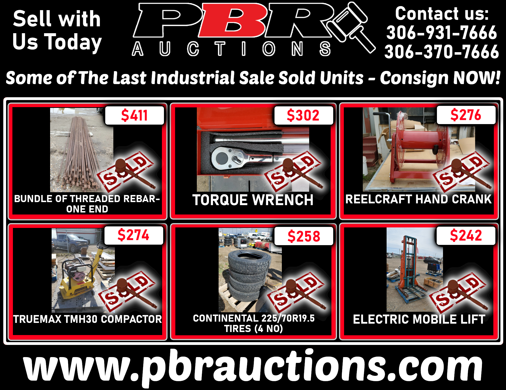 We have lots of Special Consignments from SaskPower, School Divisions, Rural Municipalities, Construction Companies, Manufacturers, Vehicle Dealerships, Retail Stores and Bank Repo's etc.